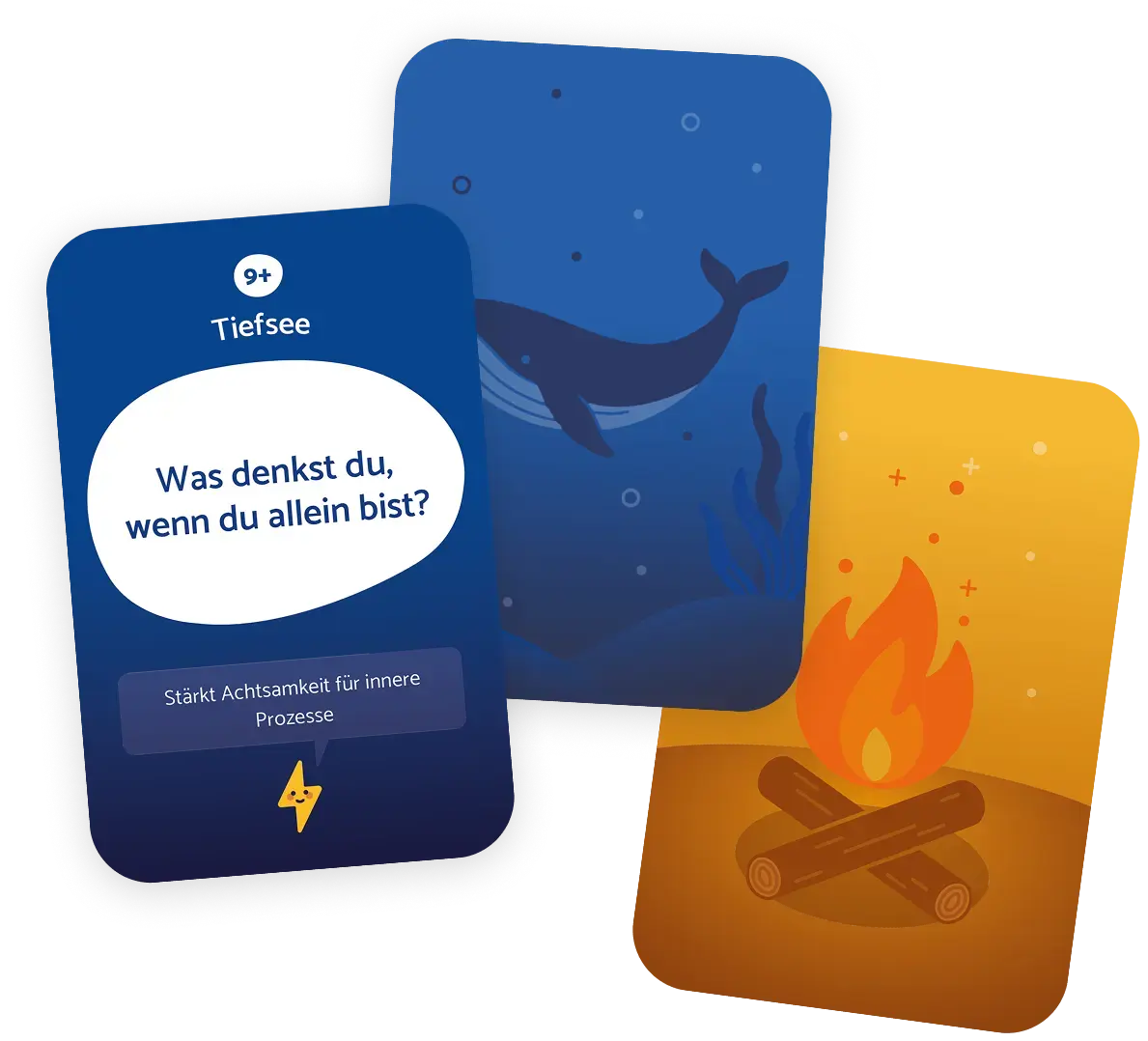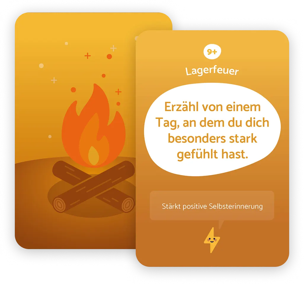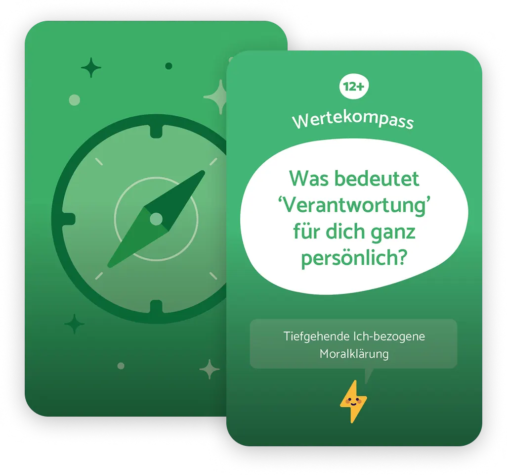 Jede Karte enthält eine Frage oder einen Impuls, zum Beispiel: